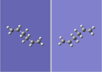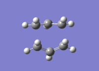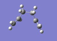 Using GaussView 5.0, a molecule of 1,5-hexadiene was drawn with an approximate anti-periplanar conformation for the central four atoms. The structure was cleaned, before being submitted to the Gaussian program for a structure optimization using the following method: