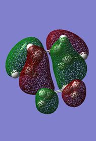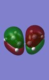 The HOMO of the two transition structures were plotted, and reported in Figures 2.10 and 2.11. The detail of the orbital overlap is different in the two cases. The HOMO of the meta product shows two medium strong interactions bringing the diene and dienophile together. The HOMO of the ortho product in the other hand shows a unique large interaction. Because of the greater stability of the ortho transition structure, it can therefore be suggested that the unique large bonding interaction is in the ortho transition structure is stronger than the two smaller ones observed in the meta transition geometry.