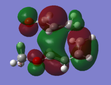 In the other hand, looking at the corresponding orbitals in the exo transition structure, these π-type secondary interactions do not seem possible, as the diene and the anhydride moeity are no longer aligned. The later is now aligned with a σ-type orbital which doesn't have the appropriate symmetry for effective overlap. Therefore, from the purely the pictorial representation of the MOs, it seens possible to rationalize the relative stability of the endo transition structure.