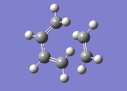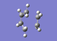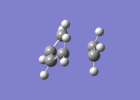 The output of the calculation generated the two reacting fragments (see Figure 2.5), the butadiene and ethene, which again seems to confirm that the right transition structure had been found. It also illustrates how useful the IRC computation can be, allowing to follow a minimum reaction pathway from the starting material(s), up to the transition state and down again to the product(s).