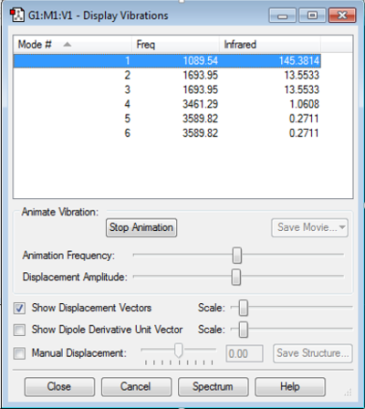Modes 1,2 and 3 are "bending" vibrations, modes 4,5 and 6 are "bond stretch" vibrations.