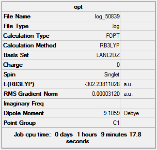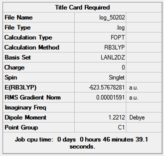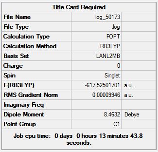 Figure 14 shows the optimization summaries for the trans isomer with basis sets LANL2MB and LANL2DZ.