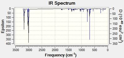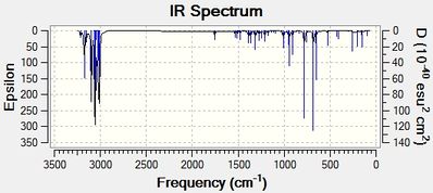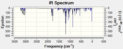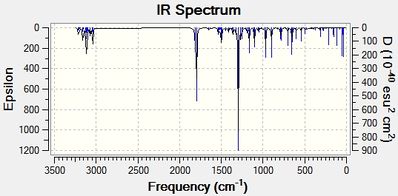 After inspection of the calculated results and the literature result, it can be seen that the values are fairly similar. However, two sets of values (carbonyl stretch and the aromatic C=C stretch) are out by ~40cm-1. As both molecules are very slightly different, the difference in stretch values can be neglected.