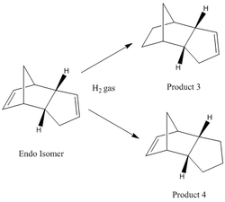 The hydrogenation of the cyclopentadiene dimer results in the formation of two possible products (see figure 4). Both products will be examined to explore the ease of hydrogenation on both C=C double bonds.