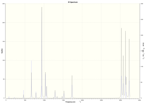 The TS guess structure was copied into a new window. Opt+Freq was selected for the job type and the structure was optimised to a TS(Berny). The level of theory for this optimisation was HF/3-21G and additional keywords were added-Opt=NoEigen(LOG file). The energy of the chair TS was -231.619322 Hartrees and the point group after symmetrisation was C2h(from C1).