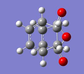 In this part, the Diels Alder reaction between cyclohexa-1,3-diene and maleic anyhydride was investigated. The reaction between these species can give two possible products-exo and endo. The endo product should be the dominant product because the reaction is supposed to be kinetically controlled. The exo and endo transition states were also computed in order to calculate the activation energies and to get the reaction path.