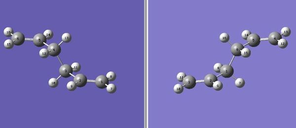 - ↑ B. G. Rocque, J. M. Gonzales, and H. F. Schaefer III, "An analysis of the conformers of 1,5-hexadiene", Mol. Phys., 2002, 100, 441-446.DOI:10.1080/00268970110081412