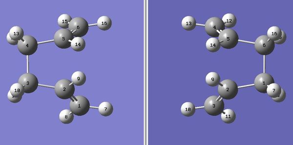 In this part of the experiment, the Cope rearrangement of 1,5-hexadiene was analysed in Gaussian. The objectives of this part of the experiment were to find the low-energy minima and the transition states of this Cope rearrangement reaction, in order to determine the preferred reaction mechanism for the molecule.