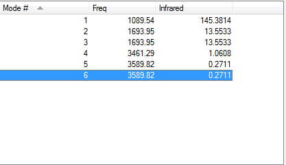 Modes 1 and 2 are bending vibrations where as modes 3,4,5 and 6 are stretch vibrations.
