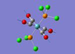 In this section, we are going to investigate the cis and trans isomer in the form of Mo(CO)4L2. We have first encountered with the isomers of this form in the 2nd Year synthesis lab. During the experiment, Mo(CO)4(PPh3)2 were synthesised and analysed. In our case, the phenyl rings attached to the phosphorus in the compound is now substituted with chlorine atoms. As the chlorine atoms preforms similar role in the compound while it is much smaller in size. The computational demand will decrease significantly. The pseudo potential is again used here.