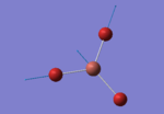 It is calculated by the program that the optimised structure is of the point group D3h. The dipole moment is again canceled out owing to the highly symmetrical structure. The Tl-Br bond distance is 2.65Å and the Br-Tl-Br dihedral angle is 120°. The molecular structure and the summary are shown below. File:Lg1109 TLBR3 OPt.LOG