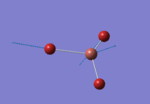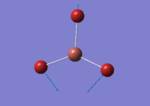 As with the IR spectrum of BH3 molecule, only three vibrational mode are observed for TlBr3 molecule. The possible explanation for this could be the degeneration of the two pairs of E' modes. If that is the case, the degenerated vibrations will appear at the same IR frequencies. On the other hand, the A1' vibration is absent from the spectrum which results from the highly symmetric motion. No change in dipole moment gives no peak on the spectrum.