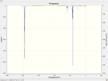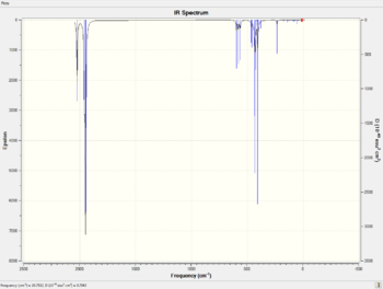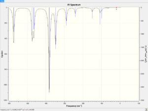 Vibrational analysis is carried out on the molecule so that the degree of optimisation can be investigated. The optimised molecule would either be in the ground state with a global minima or in a transition state with the presence of negative vibrational frequencies. The IR spectrum of the optimised molecule are predicted using Gaussian by B3LYP DFT method with a 3-21G basis set. It is important to apply the same calculation method and basis set as previous procedures. File:GELIN BH3 FREQ.LOG