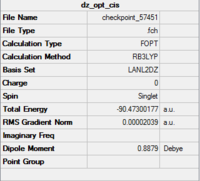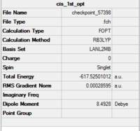 The predicted IR spectrum and the summary are shown below. File:GELIN TLBR3 FREQ.LOG