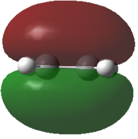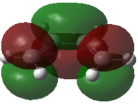 Butadiene and ethene were optimized at the semi empirical AM1 method. The HOMO and LUMO were calculated and are reported below.