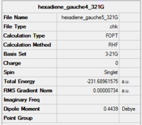 Optimisation of 1,5-hexadiene conformers, HF/3-21G basis set