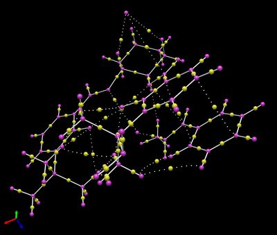 Using the Avogadro or ChemBio3D program, and using the MMFF94s mechanics force field, the starting molecules 18 was optimized to an energy minimum. Based on the previous calculations involving the cyclopentadiene dimer and the Taxol intermediate atropisomer, it was predicted that the lowest energy conformation of compound 18 would be an endo (at the large ring), chair (at the smaller cyclohexane ring) conformer, as illustrated in the jmol file on the left. This structure is also supported by crystallographic data from literature.[3]