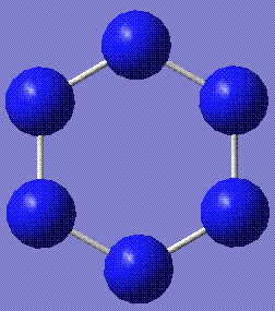 A number of possible structures for N6 was submitted to Gaussian. In particular, all the conformations suggested in literature[7] were tested. However, with this basis set only the benzene like structure was found to be stable; Dewar benzene, benzvalene, prismane and bicyclopropane either failed or reverted to three individual dinitrogen molecules. Cyclohexane-like conformations of chair, boat and twist-boat were also submitted as well as linear forms. The equivalent forms of methylcyclopentane and smaller rings with extruding nitrogen atoms were submitted.
