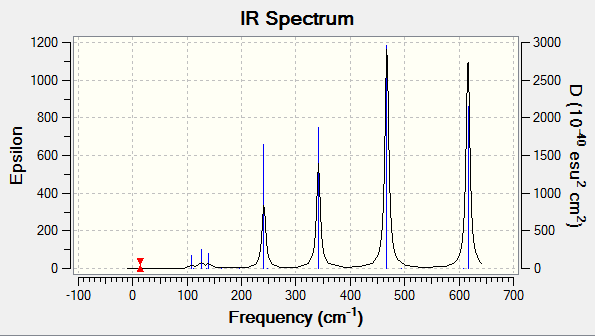 The point group of the molecule was constrained to C2v before the frequency analysis calculation was carried out on the molecule. The log file and the summary of the calculations can be found attached.