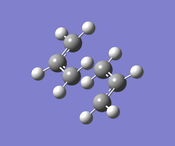 All of the checkpoint files of the above structures have been checked for energy convergence to show that the calculation job had gone to completion. The relative energies were converted using the following unit relationship: 1 hartree = 627.503 kJ/mol. The summary of the conformations shows that the energy minimum belongs to the gauche3 conformer, unlike the prediction could have been drawn from the analogy with the butane molecule. However, there is noticeable correlation between the type of the structures (gauche/anti) and their energies. The slightly raised energies are observed in the structures gauche, gauche5 and gauche6, where there is obvious proximity between the protons of two vinyl groups, supposably resulting in a steric clash.[4]