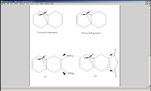 The cyclic diene 12 undergoes electrophilic addition specifically at the C=C bond that is exo (anti) to the Chlorine atom. In this experiment the optimised geometry of 12 was first investigated by using three different calculation methods, namely MM2, HF/STO 3G and B3LYP/6-31G.