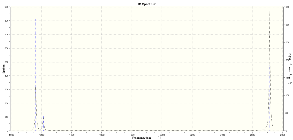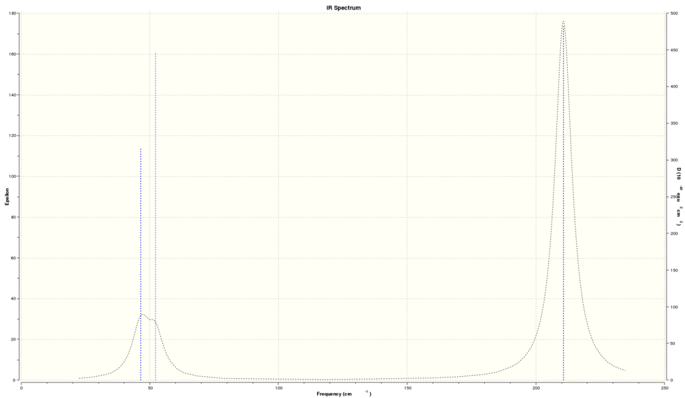 The NBO analysis revealed some interesting information when the Second Order Perturbation Theory Analysis of Fock Matrix in NBO Basis section is looked at. The points of interest are three strong (defined by being above 20kJmol-1) interactions between bonds; all at 37.59kJmol-1 ±0.01kJmol-1 The interactions were: