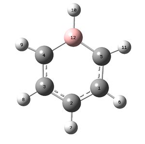 | Molecule | Benzene | Boratabenzene | Pyridinium | Borazine |