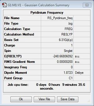 Low frequencies were close to zero showing that a minimum energy state was successfully found for pyridinium.