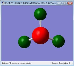 Optimisation of the NH3 molecule was carried out using the B3LYP method and 6-31G(d,p) basis set.