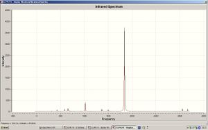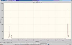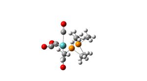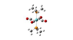 The Mo-P bonds are shorter for the trans isomer than in the cis isomer, this is because there is less steric strain in the trans isomer as there is more space for the groups to come closer to the metal. The Mo-C bonds are all the same in the trans isomer but in the cis isomer there are 2 different values depending on whether the C=O groups are round the middle (equatorial) with the phophine groups or above/below (axial) to the phosphine groups. The equatorial C=Os are closer to the metal than in the trans complex and the axial C=Os are further away from the metal centre than in the trans complex. This has the opposite affect of the length of the C-O bonds as the axial C-O bonds are shorter than those in the trans complex and the equatorial C-O bonds are longer than those in the trans complex. This is because bonding to the metal weakens the carbonyl bonding, so the stronger and shorter the M-C bond is, the weaker and longer the C-O bond is. This is due to the degree of metal-carbon backbonding, as more backbonding strengthens the metal-carbon bond but weakens the carbon-oxygen bond. The P-C bonds are a little longer in the cis complex as again due to steric hindrance they can't get as close to each other. The energy differences are very small, only 0.003 a.u. (7.876kJ/mol) between the cis and trans LANL2DZ optimised isomers and 0.009 a.u. (23.629kJ/mol) between the LANL2MB optimised isomers, the cis having the lower energy. There are more C=O peaks in the cis-isomer infrared spectrum then in the trans-isomer. This is because there are different vibrations which will cause changes in dipole as the C=O groups are in different positions compared to the trans-isomer in which the same vibrations would only show one peak as all the C=O groups are in identical positions.