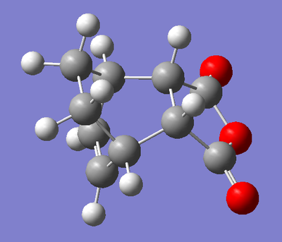 Now we have computed the transition states of the endo and exo products, we can look at the actual product molecules of the Diels Alder reaction between 1,3-Cyclohexadiene and Maleic Anhydride. The 3D structures of these two products are given below.