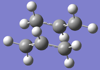 In the case of the Cope rearrangement we are going to study (that of 1,5-hexadiene), the products and reactants are the same. Therefore, we only need to do one set of calculations for these. We know that there are numerous possible conformations of this molecule, therefore, we will need to decide which is the most stable (and therefore the most abundant conformer), and which will result in the Cope Rearrangement occurring.