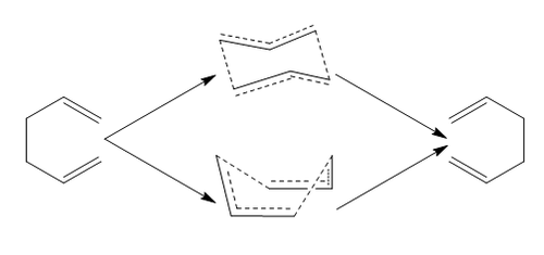 As discussed above, it is this conformation of the 1,5-hexadiene that undergoes the Cope Rearrangement, so, from now on, we shall use this form of the reactant.
