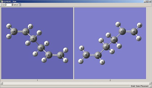 The starting material, 1,5-hexadiene was drawn in gaussview and optimised so that all the largest groups anti to each other. This was then optimised using Gaussian and a Hartree-Fock method and a basis set of 3-21G.