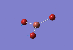 The same procedure as above for BH3 of calculating the frequency analysis was performed on the optimised TlBr3 molecule and submitted to the departmental cluster computers yielding the following Tlbr3 molecule and calculations.