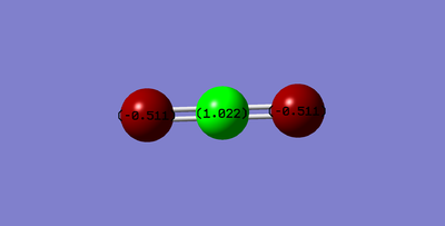 The difference in electronegativity between carbon and oxygen indicates that oxygen would adopt a negative charge, with carbon a positive charge. Oxygen is more electronegative than carbon. It is also interesting to note how positively charged the carbon atom is.