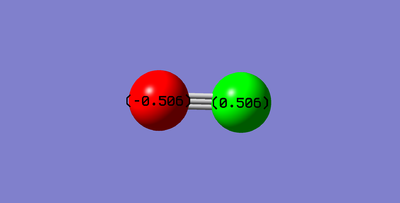 The charge distribution shows that there are equal and opposite charges on every molecule of CO, therefore the overall molecule is neutral. It is expected that oxygen adopts the more negative charge as it is more electronegative than carbon.
