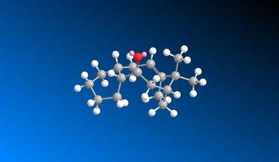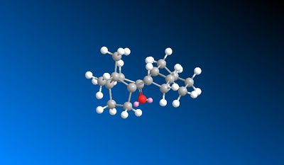 The two products of hydrogenation 3 and 4 (figure 1)were also defined and optimised. This gave energies of 154.22KJmol-1 and 130.34KJmol-1 respectively, this shows that 4 is the thermodynamic product. As can be seen in the table below, product 4 has lower values for all the contributions of stretching, bending, torsion and H-Bonding energy contributions. This is therfore the double bond in the norborene part of the ring is hydrogenated first under normal conditions, to give product 4. It then takes more forcing conditons to hydrogenate the double bond in the cyclopentane ring.