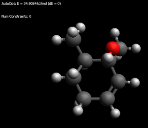 [All energies are calculated with the MMFF94s force field with the conjugate gradients algorithm. There is a rather interesting bug with avogadro (report here) where dragging hydrogens 'out' of other atoms to bond them causes a runtime error, so if any students manage to cause this advise them to sue Build > Add Hydrogens instead]