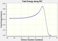 The QST2 optimised boat transition state structure was further optimised with the IRC method and 50 points on the HPC server (D-space link: http://hdl.handle.net/10042/to-11289). The calculation converged in 47 steps.
