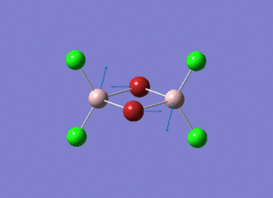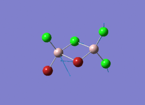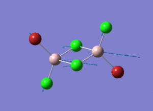 The same method and basis set as previous were used to run optimization and frequency analysis for Al2I2Cl4. I is a bigger atom than Br. In theory, Al2I2Cl4 should be less stable than isomer 1 because of the poor overlap. The purple atoms are I. The calculation information is listed below: