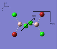 Symmetry elements | C2(x),C2(y),C2(z), σh(xy), σh(xz), σh(zy) | no symmetry element | C2(y), σh(zx) | C2(z), σv(zx), σv(zy) |