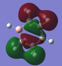 borazines electrongeative nitrogens mean that the orbital with the largest nitrogen contribution will be larger (seen in the HOMO as illistrated) and vice versa with the orbital with 2 boron atoms and 1 nitrogen being smaller.