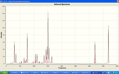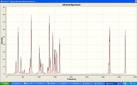 From the IR differences are meant o be clearly seen. Noticably an IR band for anti at 3414cm-1 for the N-H stretch and for syn a different band at 2920cm-1. However in the IR generated by gaussview no differences are seen apart from the noticable differenc in intensity for the relative peaks - the anti being lower than syn. Gaussview gave 3692cm-1 for the N-H stretch in the anti and 3690cm-1 for the syn. The vibrations are different but not significant enough.