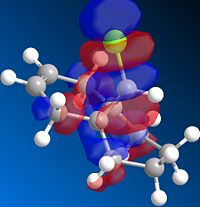 This can be explained however by the orbital overlap of the 2 alkenes in the endo product. During the endo transition state the orbitals on each of the pentene rings are able to overlap with oneanother as they are of the correct symmetry and phase [1]. As this interation is favourable in energy during the transition state the endo product is therefore the major product formed. Due to the transition state in the endo product being most stable and the endo product being formed, it shows that this reaction is kinetically controlled.