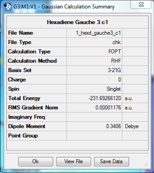 The log file of postulated lowest energy conformation 1,5-hexadiene (opt 3-21G) is available here.