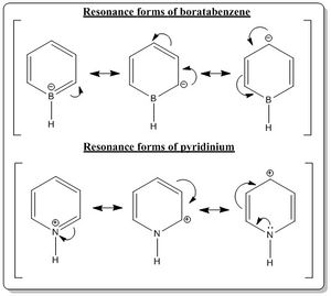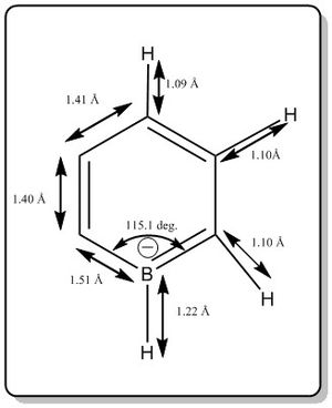 Comparison of bond lengths and bond angles of boratabenzene, benzene, and pyrimidium.