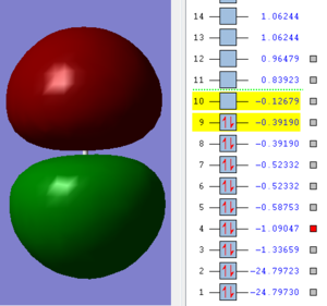 This image shows a sigma molecular orbital. It is made with the two 2s atomic orbitals of the fluorine atoms.