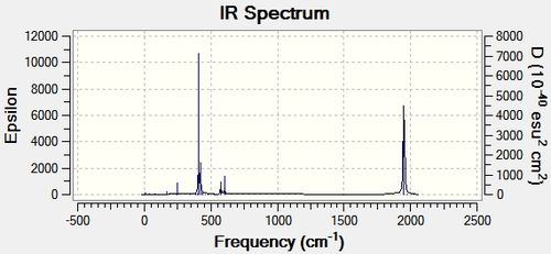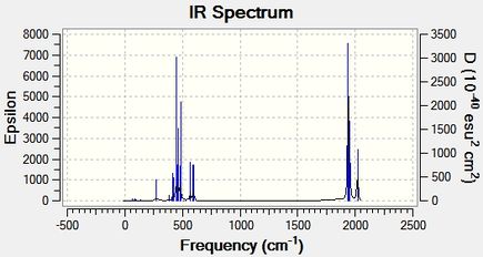 | Vibration 4 | Symmetric Stretch | view | 868 | 18.99 | A'1 | view | 476 | 34.96 | A'1 |