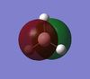 Furthermore, the BF3 molecule was found to have 3 stabilising interactions that were of the magniude of ~50 kcal/mol, and these values implied a lone pair donatin into a LP* non-bonding Boron p-orbital. However, it can be seen in the table above that the BCl3 molecule shows only 2 interactions of such magnitude, and these interactions involve the stabilisation of the anti-bonding B=Cl bond that was found and commented on earlier. Moreover, missing 50 kcal/mol interaction belongs to the Cl 3 atom, which was again the one found to have the B=Cl pi bond in the hybridisation analysis, which explains the absence of lone pair donation from this Cl since it is already donated to the resonance pi bond. This interaction is given on the diagram below;
